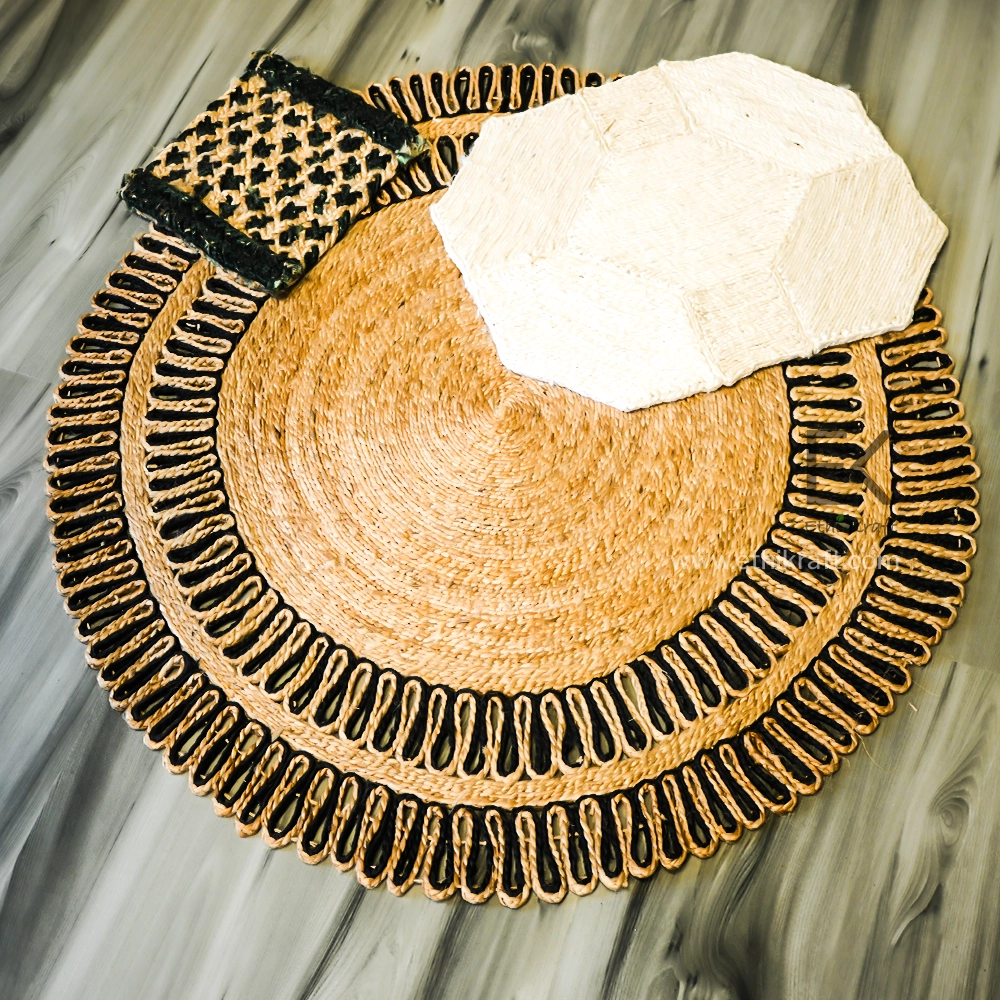 Ethi Kraft Handmade Jute Rug – Round, Natural & Eco-Friendly – Best choice for your kitchen & Bedroom.